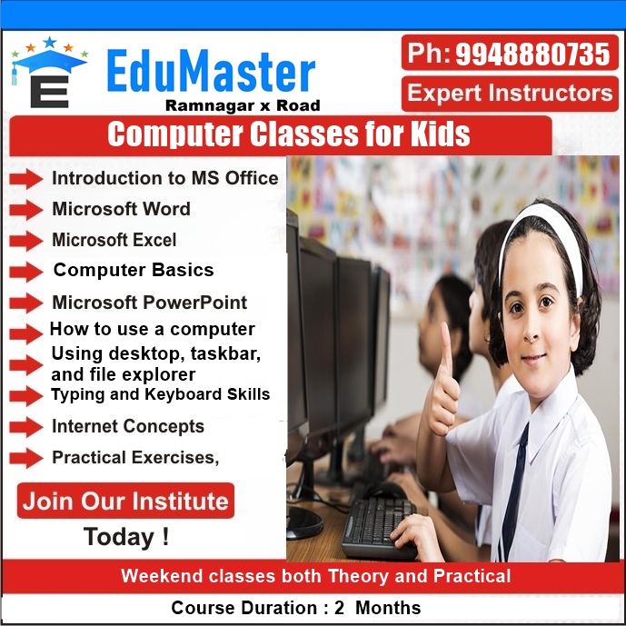 "Edu Master is a Educational institution offering Tution classes for school children from class 1 to class 9th in Ramnagar Hyderabad to help them gain thorough knowledge in all subjects. We have a team of teachers to teach children in a friendly atmosphere in institute located in Ramnagar hyderabad. Our aim is to offer quality education to children in Ramnagar hyderabad at affordable monthly fee. We offer Abacus, vedic math, Slokas, logical reasoning, computer basics etc., in Ramnagar hyderabad Edu master conducts summer camp for school children which includes painting, arts and crafts, clay art, slokas, story telling, fun gaes, langauge basics, phonetics, abacus and vedic maths etc."